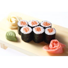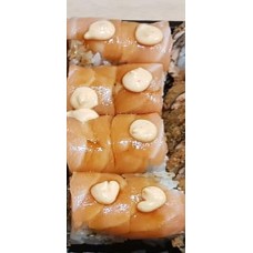 California roll getopt met zalm en huisbereide mayonaise saus.