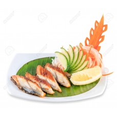Een berg van pikante getoaste verschillende vissen met onze huisbereide saus.