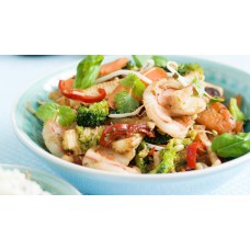 Wok scampi en kip